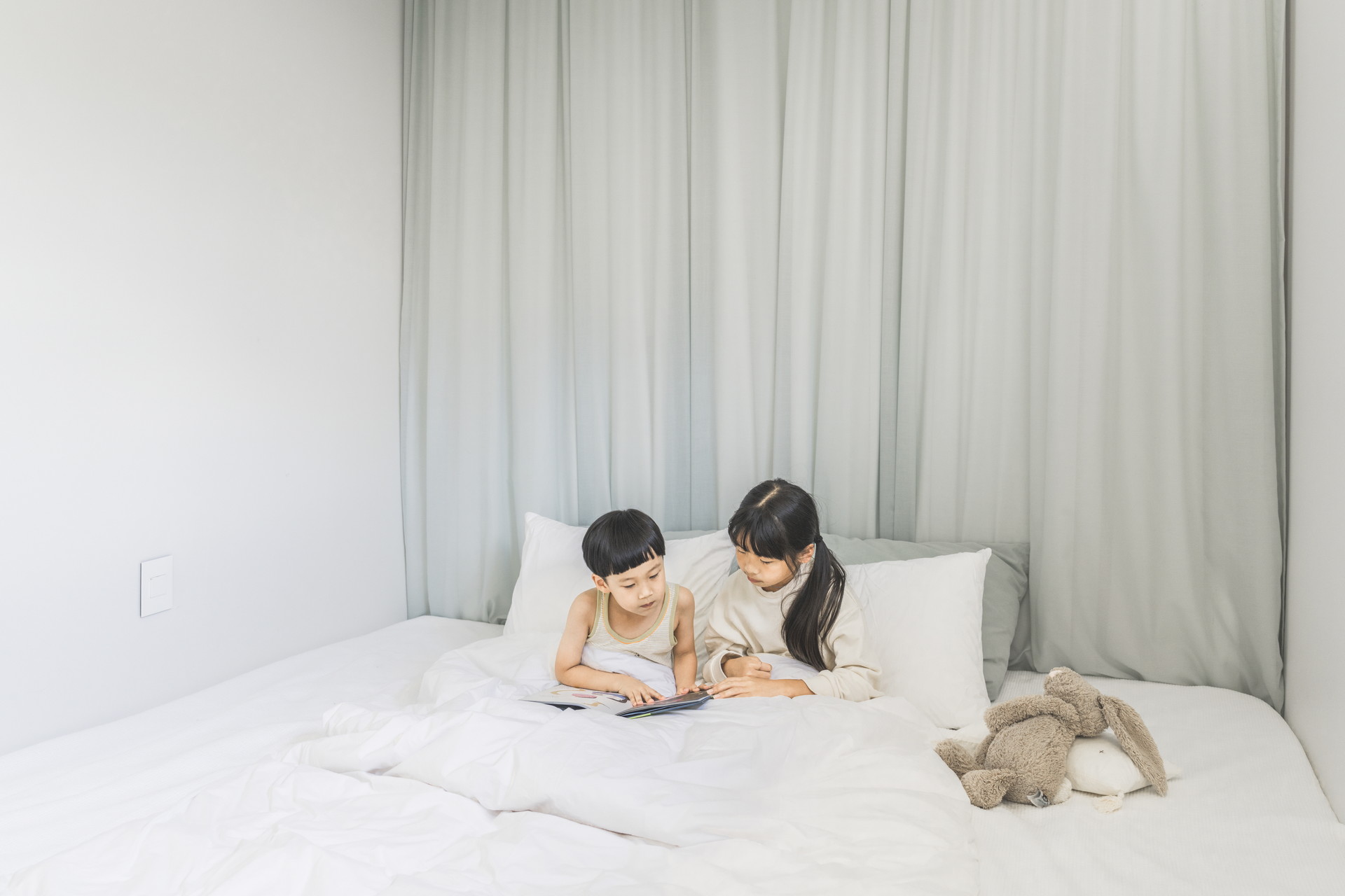 방 안을 포근함으로 가득 채운 아늑한 침실입니다.