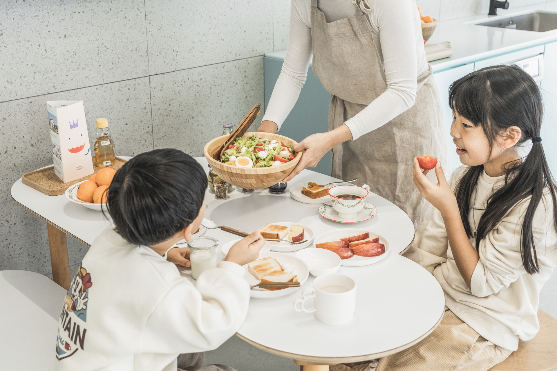 호스트가 만든 수제 요거트와 그래뇰라, 아이를 위한 우유